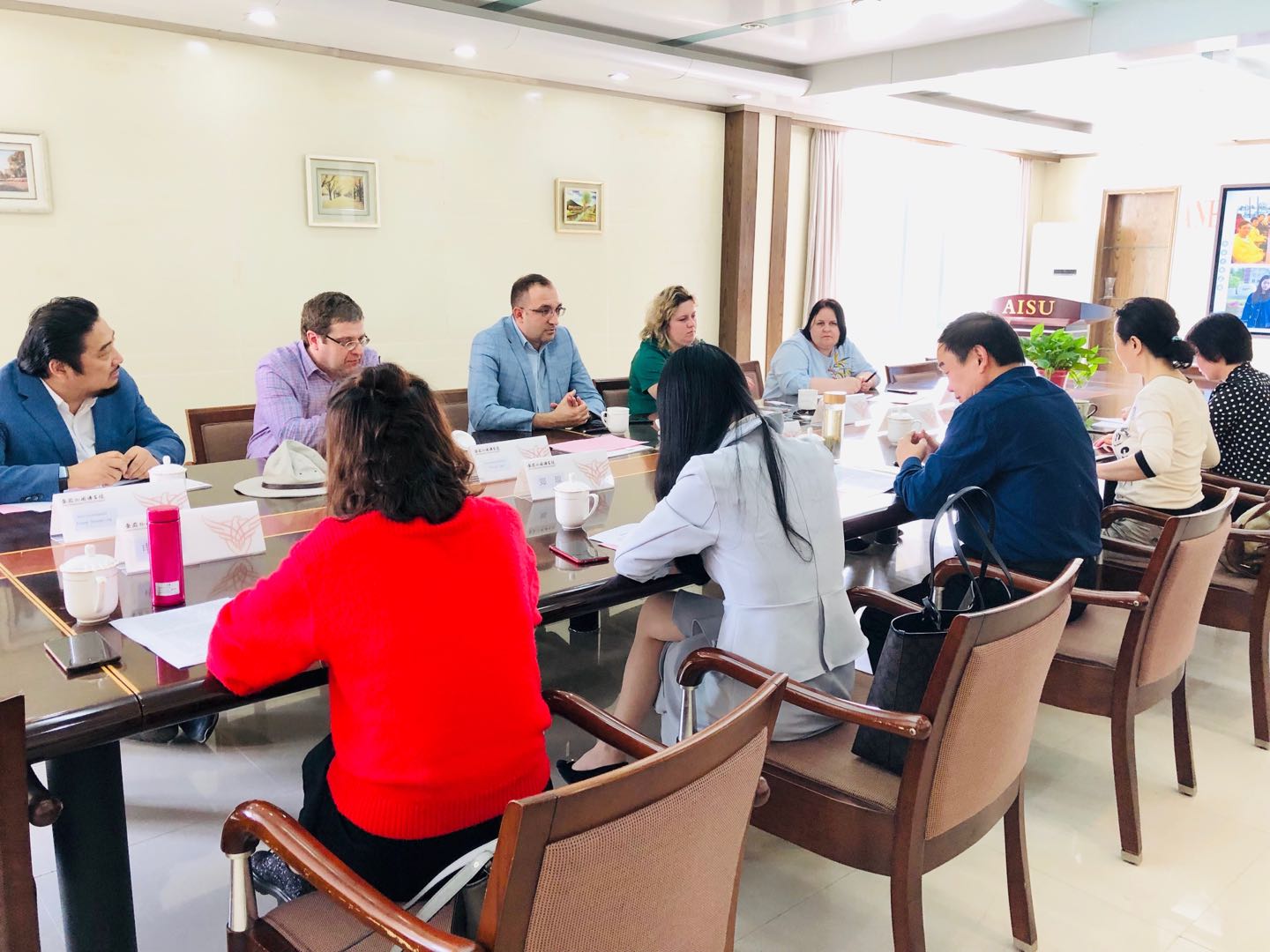 4月19日下午,莫斯科市立师范大学常务副校长德米特里·阿格拉纳特Agranat Dmitrii、国际部部长达里娅·梅尔耶娃Milyaeva Daria、中国语言系主任瓦伦蒂娜·瓦史克雅维楚斯(女)Vashkyavichus Valentina等一行来我校交流访问。我校副校长陈国平、西方语言学院副院长鞠红、西方语言学院教学秘书郑琼、国际交流处副处长翟艳、俄语专业教研室主任申丽影等出席了交流会,双方共同商讨未来合作交流事宜。