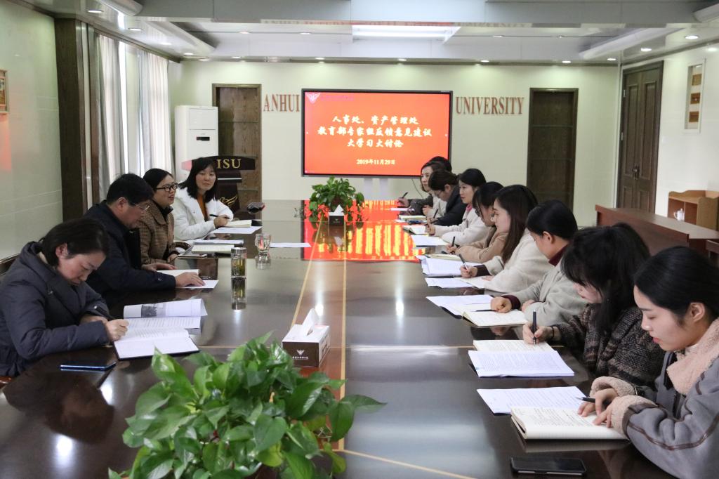 按照学校的部署要求,校人事处、资产管理处分别于11月29日下午和12月4日上午组织开展“教育部评估专家组反馈意见建议大学习大讨论”会议。会议由校长助理童祖芬主持。