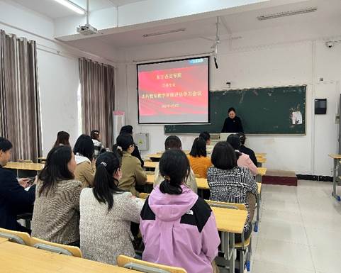 会上,系主任甘丽鹃强调了推进本科教育教学评建工作的重要性,带领教师从总体上解读了《普通高等学校本科教育教学审核评估学习材料(2021—2025年)》。布置了近期的评建工作任务,要求各教研室高度重视,要认真对教师开展本科教育教学审核评估培训,要做到全员学习、全员参与,切实按照工作要求,认真总结凝练,以评估为抓手,提升育人成效。