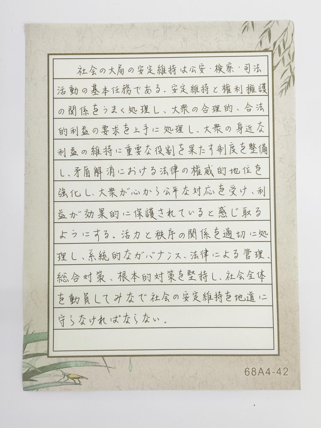 比赛分为征稿和评审两个阶段,10月7日至13日为征稿环节,由参赛者自行提交参赛稿件。参赛者书写《习近平谈治国理政》的节选内容。评审环节中,评委们从书写规范、结构合理、字形优美及整体效果四个方面进行评分。选手们的作品风格多样,或刚劲有力,或柔美流畅,充分展现了当代大学生的艺术素养与审美能力。