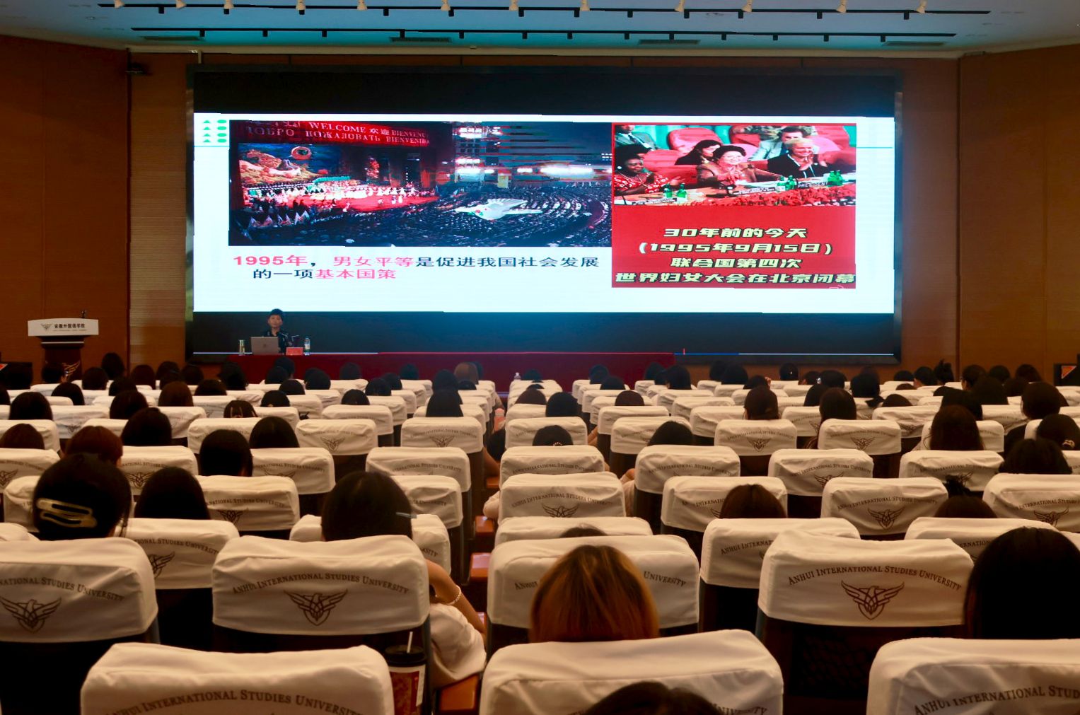 中共安徽省委党校(安徽行政学院)妇女理论教研部主任、副教授陆文芳受邀来到学校开展题为《促进男女平等和妇女全面发展》的专题讲座。本次活动由校妇联主席王蓓羽主持,2025级新入学女大学生及2025级新入职女教师共同参与。
