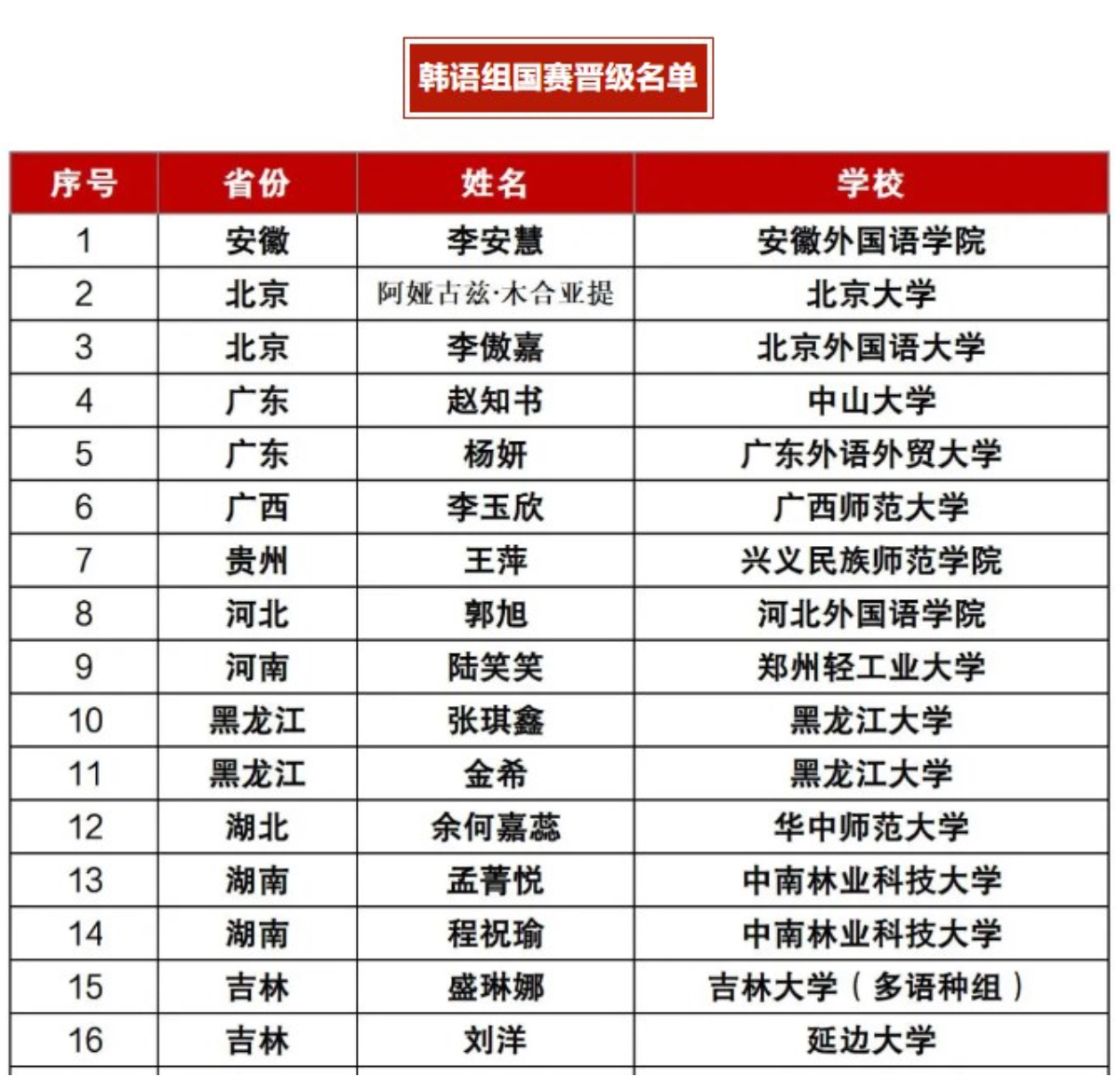 我校东方语言学院学子在2024“外研社·国才杯”“理解当代中国”大学生外语能力大赛多语种组(安徽省赛区)中脱颖而出,李安慧同学荣获韩语一等奖、计海乐同学荣获日语组二等奖、赵子琪同学荣获韩语组三等奖、童善斌同学荣获日语组三等奖。其中2021级朝鲜语专业李安慧同学成功晋级国赛,将在全国赛场上展示我校学子风采。