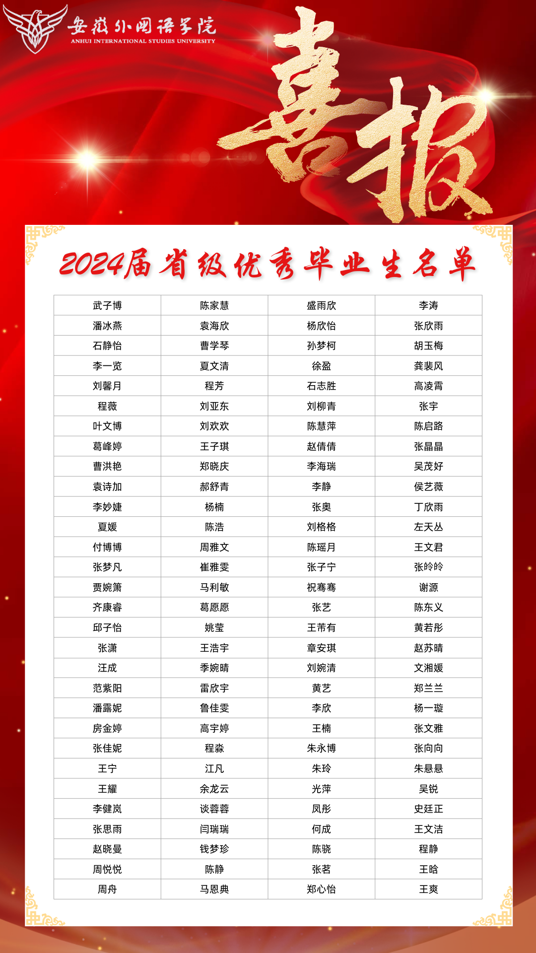 近日,安徽省教育厅公布了2024届省级优秀毕业生名单。我校120名毕业生获此殊荣。