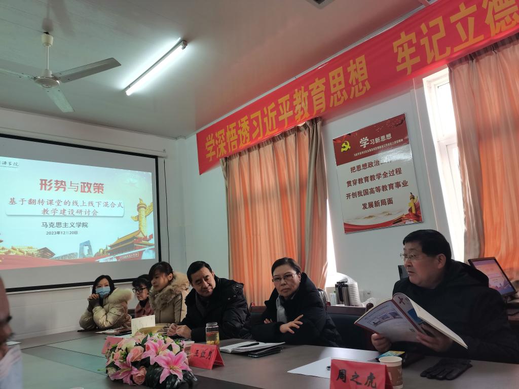 王红月强调,马克思主义学院是学校立德树人、培根铸魂的重要阵地,要加强“形势与政策”课教师队伍建设,不断提升青年教师的思想素质和政治素质,提高教学质量;要丰富教学内容,引导教师结合世情、国情、省情、市情、校情,用学生身边的生动案例把道理讲清楚,达到启智润心的育人效果;要加强改革创新,努力在教学方法和教学形式上取得突破,取得新成效。(撰稿:张俊 图片:张俊 审核:赵业丽)