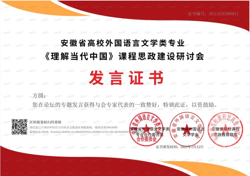 为深入学习贯彻党的二十大精神,全面推进《习近平谈治国理政》多语种版本“进高校、进教材、进课堂”工作,我校选派12名外语教师参加3月11日在池州学院召开的安徽省高校外国语言文学类专业《理解当代中国》课程思政建设研讨会,并安排教师发言。