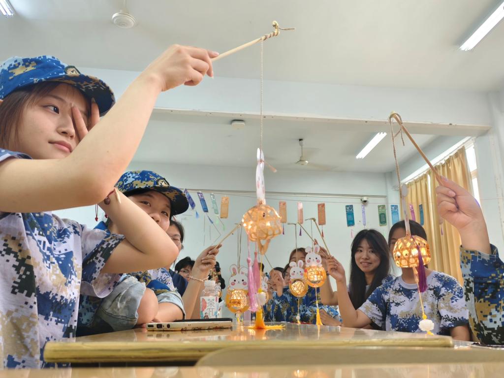 活动伊始,205教室里便洋溢着欢声笑语。在DIY中秋灯笼环节中,同学们巧思尽显、巧手翻飞,手持工具、搭配材料,亲手制作出一盏盏独一无二的中秋灯笼。暖光亮起,映照在同学们笑意盈盈的脸庞上,既点亮了对传统节日的感知,也映照出对未来的美好期许。