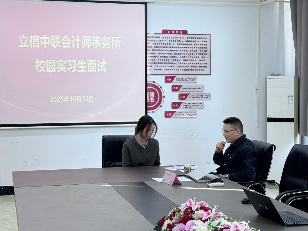 为搭建毕业生与行业企业的实习对接桥梁,助力2026届学子提前打通“专业学习”与“职场实践”的衔接通道,10月22日下午,国际经济学院邀请立信中联会计师事务所、联合中和土地房地产资产评估有限公司2家企业,在主教楼125会议室举行校园实习生面试会,我院2026届毕业生积极参与。