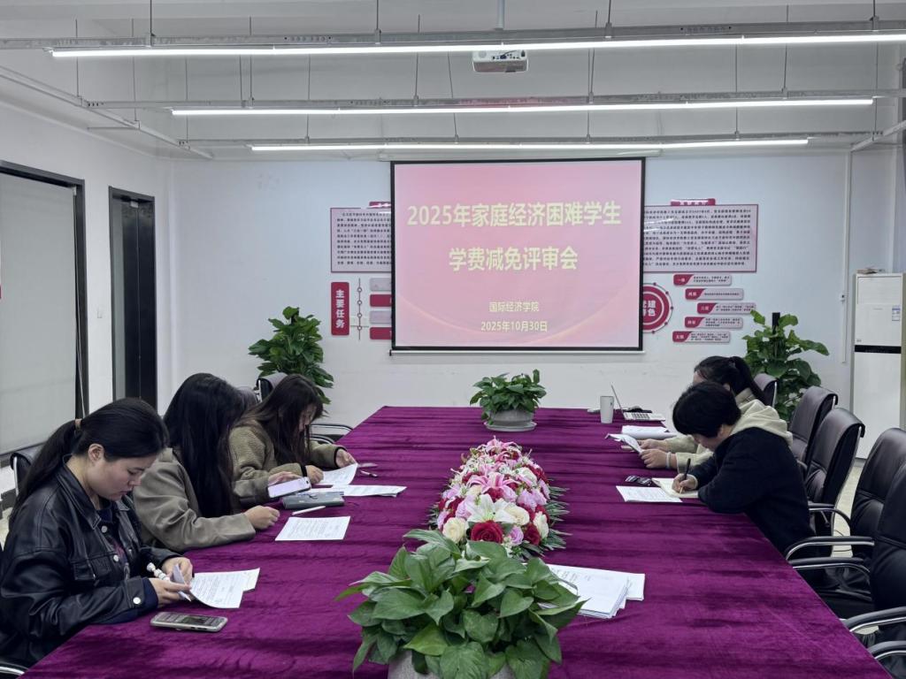 为深入贯彻落实国家教育资助政策,切实保障家庭经济困难学生安心求学、成长成才,10月30日上午,国际经济学院于主教楼125会议室召开2025年家庭经济困难学生学费减免评审会。国际经济学院党总支书记、执行院长高淑香、党总支副书记彭丽萍、辅导员尹雨晴、詹雅雯、张慧颖出席会议。会议由彭丽萍主持。