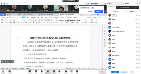 为加强教学质量监控,充分发挥学生参与教学管理的作用,实现教学全过程的有效监督,进一步完善教学质量保障体系,10月26日下午,国际经济学院在线上组织召开国际经济学院学生教学信息员全体大会暨教学信息员分委员成立大会,国经学院72名信息员参加了此次会议。会议由国际经济学院党总支书记、执行院长高淑香主持。