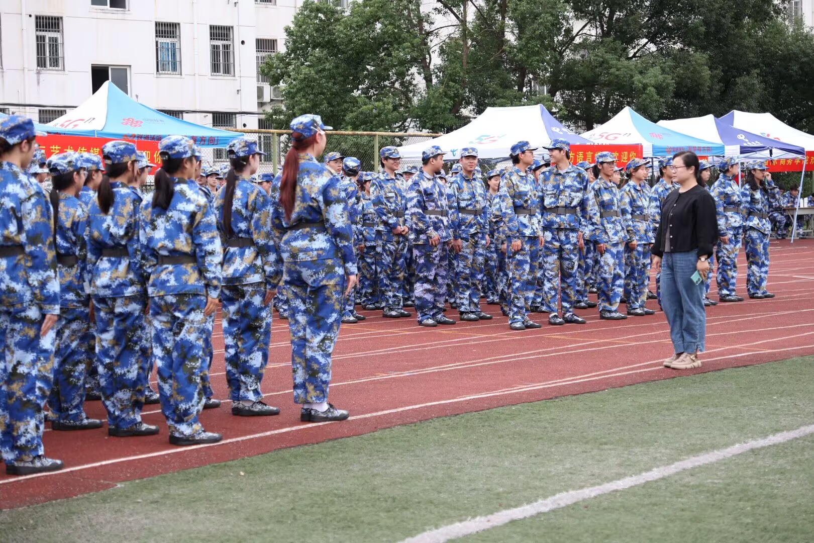 在军训现场,满德慧一行驻足观摩新生训练,目光细致关注着同学们的队列动作与精神状态。她走上前与新生亲切交谈,详细询问大家的日常作息是否适应、饮食住宿是否舒心,尤其叮嘱同学们:“军训虽苦,但要注意劳逸结合,及时补充水分,做好防晒防暑,若身体有任何不适,一定要第一时间向教官或辅导员反映。”同时,她勉励新生们:“军训是大学生涯的‘第一课’,既是对体能的锻炼,更是对意志的磨砺,希望大家能以昂扬的斗志、坚韧的毅力投入训练,在汗水中收获成长,展现国际旅游学院学子的青春风采。”辅导员陈佳妮、夏文清也围绕新生关心的学业规划、校园生活服务等问题耐心解答,用贴心的叮嘱和细致的帮助,让新生们感受到“家”的温暖。