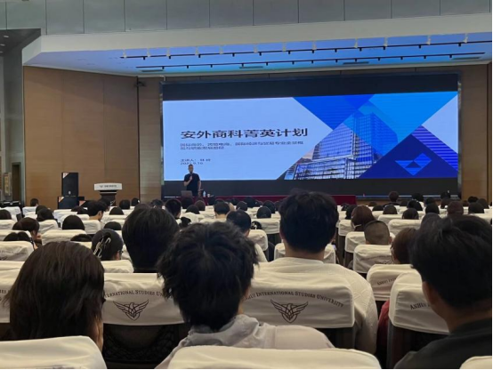 本次企业导师讲座覆盖电子商务、跨境电子商务、国际商务、国际经济与贸易、人力资源管理、知识产权等多个专业方向,三位企业导师结合自身行业经验,为新生解锁专业实践的“密码”。安徽轩昂教育科技有限公司培训总监林峰为电商、跨境电商、国贸等专业新生分享行业实战经验,从平台运营到海外市场拓展,用案例呈现人才能力要求;安景物业董事匡龙云为人力资源管理专业新生解析企业人力资源管理的实务场景,从组织人才战略规划到核心团队效能提升,让学生直观感受人力资源管理在企业发展全局中的战略价值;知识产权领域企业导师罗广泽为学生带来行业前沿动态,从知识产权布局到维权岗位实务,展现专业在企业创新发展中的关键作用。