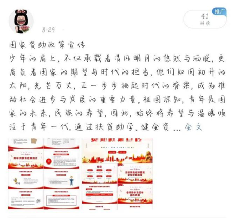 23级人力资源管理本科班张自然将政策宣传延伸至基层与网络平台。她前往宿州市埇桥区道东街道,结合自身经历向居民讲解国家资助政策,帮助困难家庭打消子女教育的经济顾虑。此外,她利用课余时间在小红书发布生源地助学贷款、学费减免等政策科普帖,并在微博同步宣传,借助网络平台实现政策及时、广泛传播。
