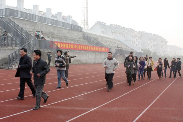 我院历来倡导健康生活,坚持开展丰富多彩的体育活动,倡议全院师生都积极参与到“阳光体育冬季长跑运动”活动中去,每天坚持锻炼一小时,又一次在师生中掀起体育锻炼的热潮,不断提高身体素质,培养顽强的意志品质;让每一位同学都能感受到运动的快乐,在体育锻炼中学会如何相互帮助、支持、鼓励和合作,学会尊重与理解、学会克服困难。展示出了我们安徽外国语学院师生们积极向上、健康阳光的精神风貌。