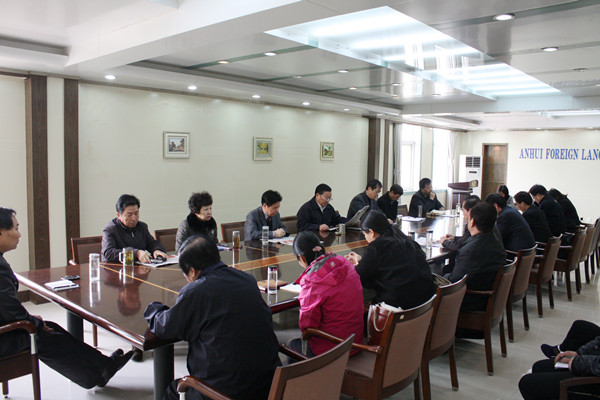 11月15日上午9:00,安徽外国语学院举行党委理论学习中心组学习会议,传达学习党的十八届三中全会精神。党委中心组全体成员、各部门主要负责同志参加会议,党委书记汪良发主持会议。