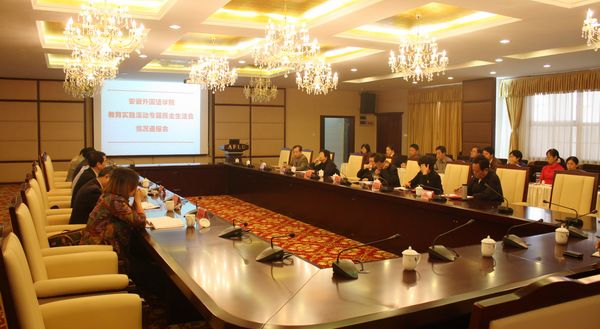 2013年10月24日,安徽外国语学院召开党的群众路线教育实践活动专题民主生活会情况通报会。省委第20督导组组长仲兆京,副组长刘群英及成员王东华、宋海林到会指导。校领导班子成员、党委委员;党总支书记、副书记;二级学院院长、副院长;中层党员领导干部;校活动办成员;党员中级职称以上教师参加会议。会议由院长洪祥生主持。