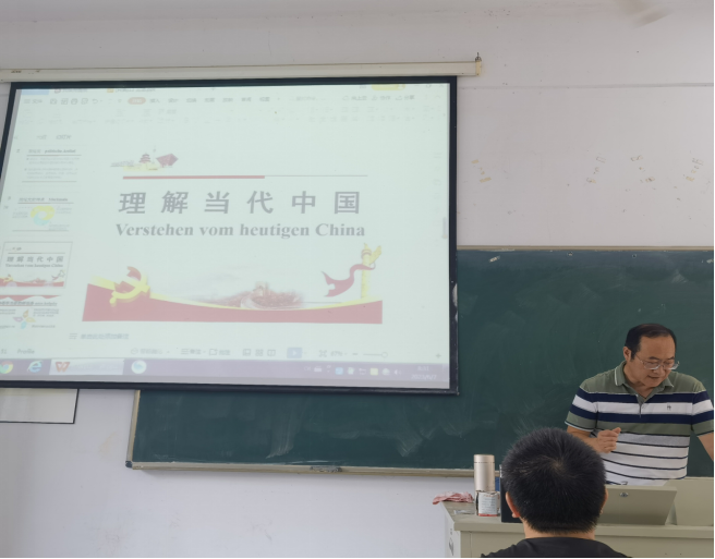 为学习贯彻习近平新时代中国特色社会主义思想,深入推进《习近平谈治国理政》多语种版本“三进”教学工作,6月7日上午8:30在西语楼204教室,德语教师陈伟开展了德语笔译理论与实践课程的公开课教学活动。德语教研室全体教师进行观摩。