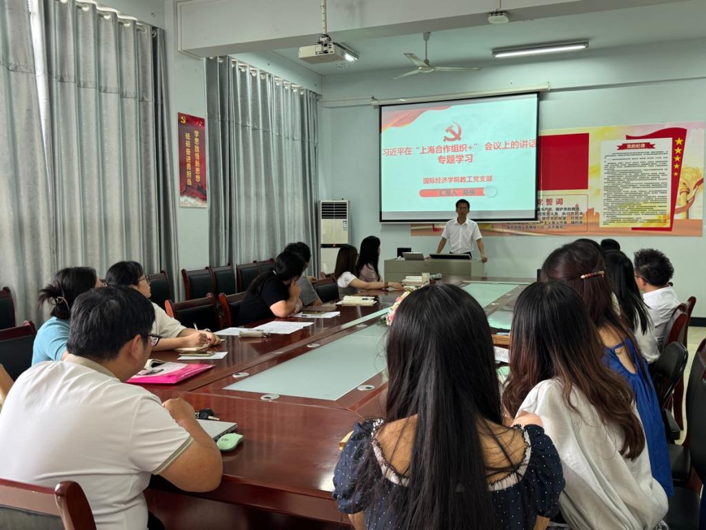 为深入贯彻落实上级党委关于加强政治理论学习的部署要求,进一步提升教工党员的政治素养和理论水平,9月17日下午,国际经济学院教工党支部在国经楼208会议室开展9月政治理论专题学习。会议由教工支部书记赵俊主持,教工支部全体党员参加。