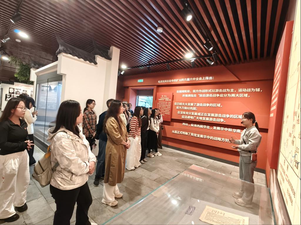 在庄严肃穆的新四军江北指挥部纪念馆,大家怀着崇敬之心,仔细观看历史文物、图片和文献资料,认真聆听讲解员讲述新四军在江北地区的英勇抗战事迹。一段段感人故事、一件件革命文物,仿佛将师生带回到那段烽火岁月,深刻感受到革命先辈坚定的理想信念、不屈不挠的斗争精神和深厚的爱国情怀。参观过程中,党员们不时驻足交流,纷纷表示思想受到了深刻洗礼,更加坚定了理想信念。