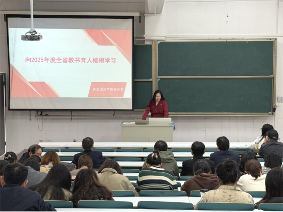 会议第一阶段,韩璐组织全体教职工系统学习领会习近平总书记关于青年工作的重要论述。会议专题学习了2025年度全省教书育人楷模先进事迹,并集体观看了相关学习视频。