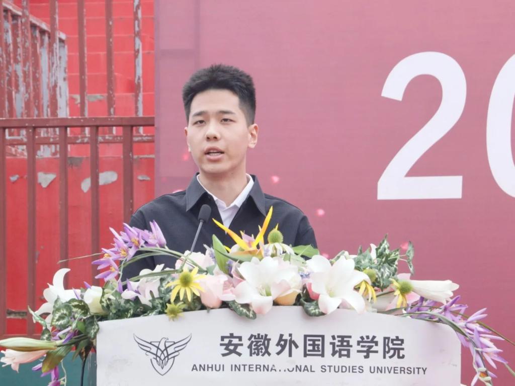 汇演结束,23级文学与艺术传媒学院亢浩燃同学作为新生代表上台发言,表达了自己对大学生活的憧憬和向往。