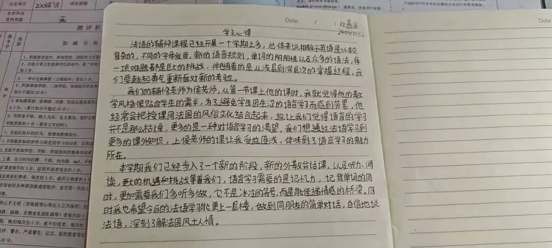 我在每一次听力,每一次阅读,每一场会话中,慢慢构建起对另一种语言系统的认知,也更坚定了自己走向国际舞台的信心。这段学习经历最宝贵的,不仅是语言能力的提升,更是学习方法的获得和跨文化视野的开阔。愿这段学习的时光成为我青春中又一笔鲜亮的注脚——不畏尝试,不负热爱。