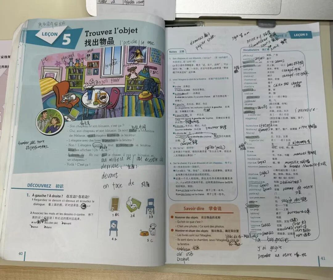 一开始接触法语,我差点被“劝退”。在我们的英语学习中说英语不用管名词“男女”,但法语里“桌子(la table)”是阴性,“椅子(le fauteuil)”是阳性,阴阳性记不准,就不能进行性数配合,就学不好法语。最搞笑的是刚学的时候,总把法语往英语里套,比如想说“我是学生”,直接按英语“I am a student”译成“Je étudiant”,结果老师指出来:法语里名词必须带冠词,得说“Je suis étudiant”。所以说在法语学习中也特别要注意冠词的用法。