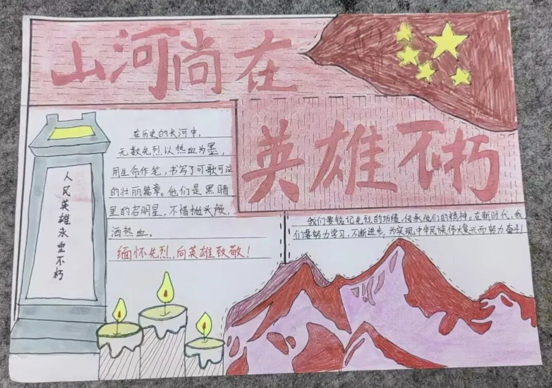 此次活动以手抄报创作为载体,让同学们深刻体悟到先烈们的伟大精神,使红色基因深深融入血脉之中。同时,同学们通过绘画和文字等形式,表达了对先烈的无限缅怀与敬意,让红色记忆在新时代青年的心中熠熠生辉。