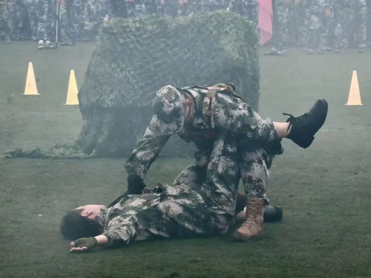 接下来,警棍方队、刺杀操方队、擒敌拳方队、破风八刀方队及教官们的战术表演依次展示。安外学子以飒爽英姿诠释青春担当,用昂扬斗志点燃现场激情,赢得了全场的喝彩和阵阵掌声。