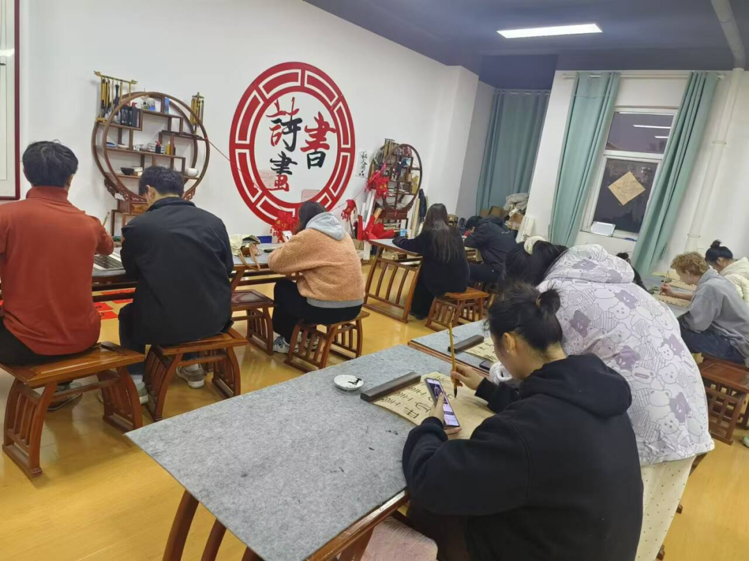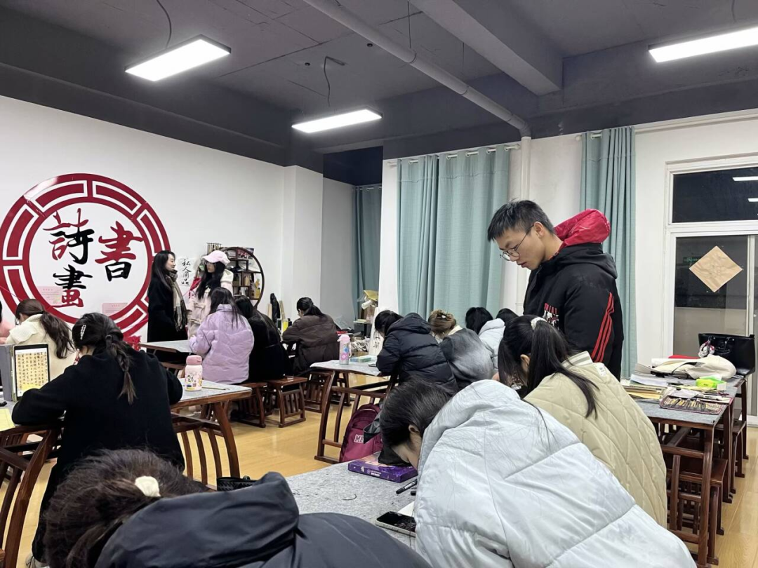 这里是志趣相投者的雅集之地!协会为同学们搭建纯净的交流学习平台:共享活动空间(25栋210室)配备丰富专业的纸墨笔砚、绘画工具。每周教学课堂上,更有学长学姐倾情相授、相伴研习——一笔一画传技法,一字一句品风雅。