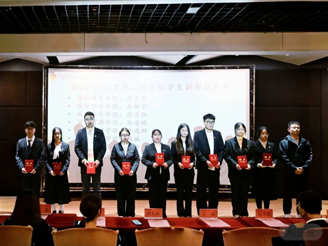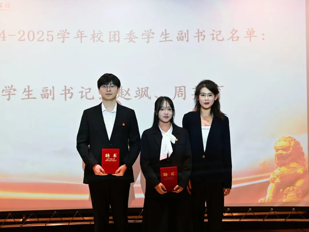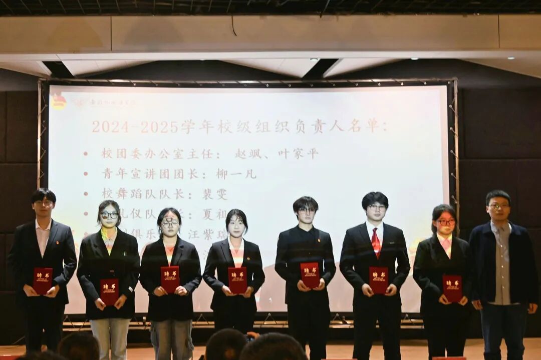 各代表发言结束后,随后进行聘书发放仪式。由于焱书记、胡礼盼副书记、杨卫东副书记、詹雅雯副书记分别为2024-2025学年校团委学生副书记、各二级学院学生副书记、校级组织负责人、各校组织优秀干事颁奖。