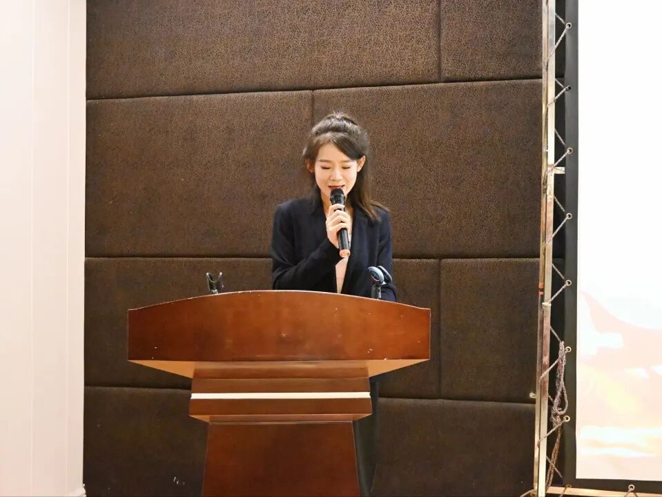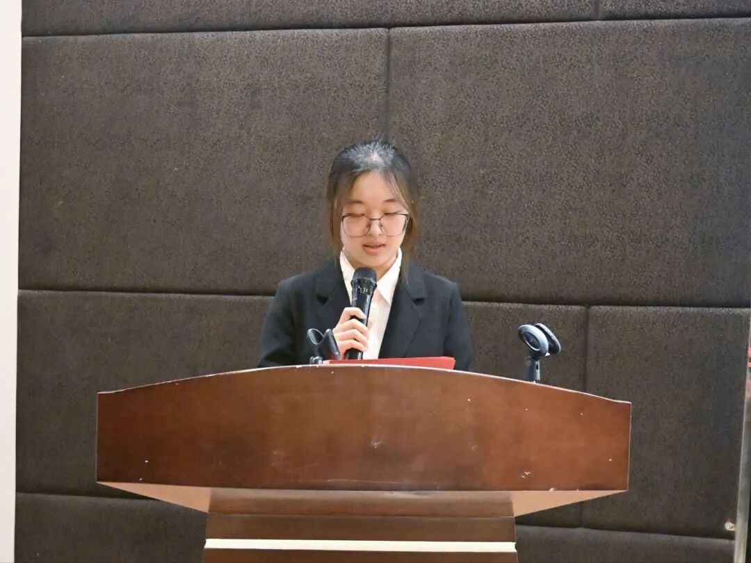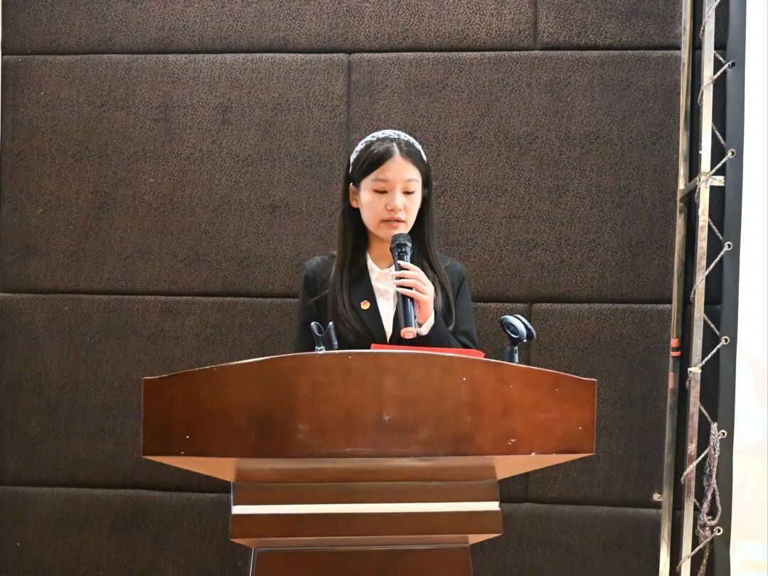 郑恩彤作为优秀干事代表发言。她回顾了自己在学生组织中的成长历程,分享了工作中的经验与感悟。她鼓励全体干事要保持对工作的热忱,勇于担当、善于协作,在实践中提升能力,在奉献中实现价值,共同打造更具影响力的学生组织品牌活动。