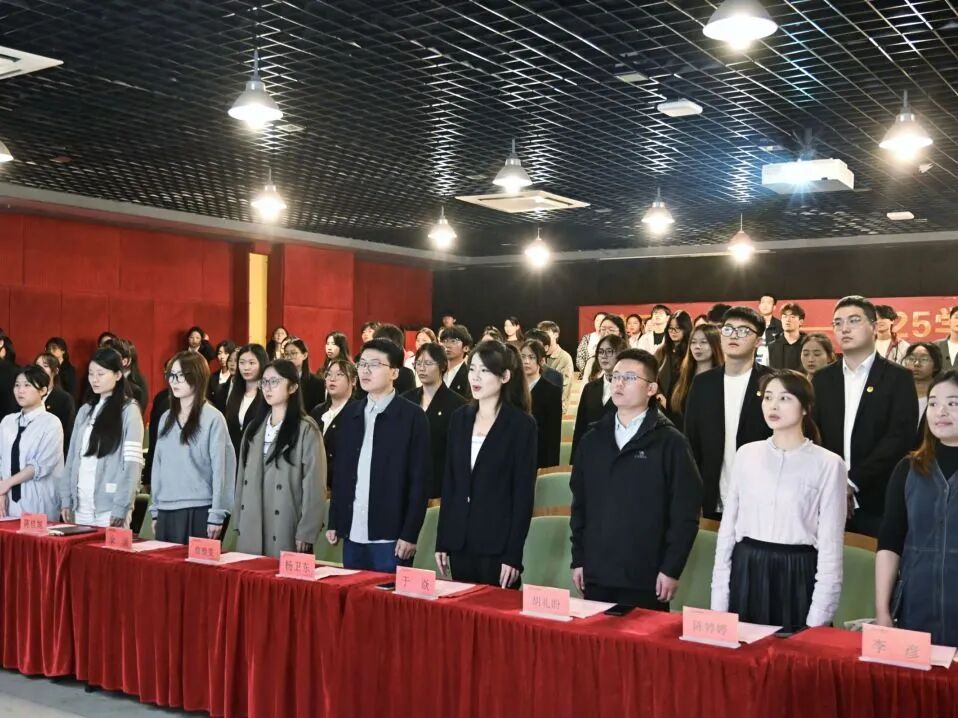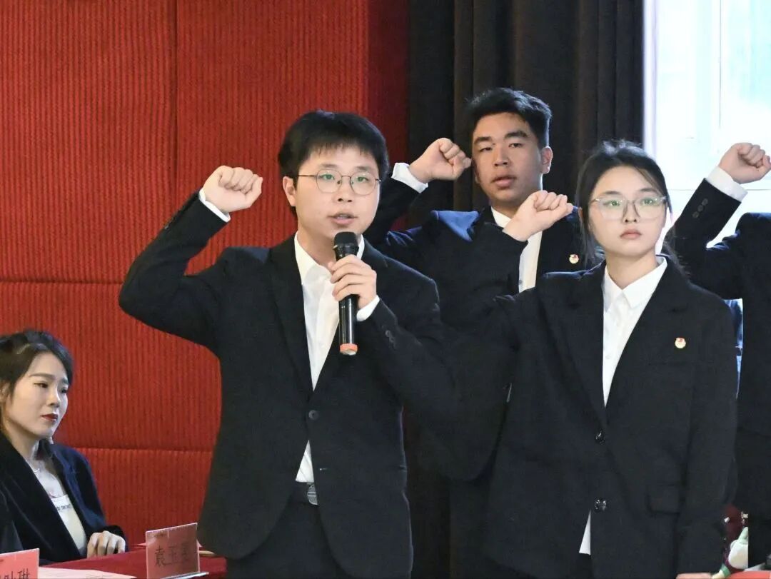 随后,在学生副书记王仁锐的带领下,全体新任学生干部庄严宣誓。铿锵有力的誓言在会场中回荡,彰显了他们服务同学、奉献组织的坚定信念,也表达了他们将以实际行动履行职责、践行使命的决心。