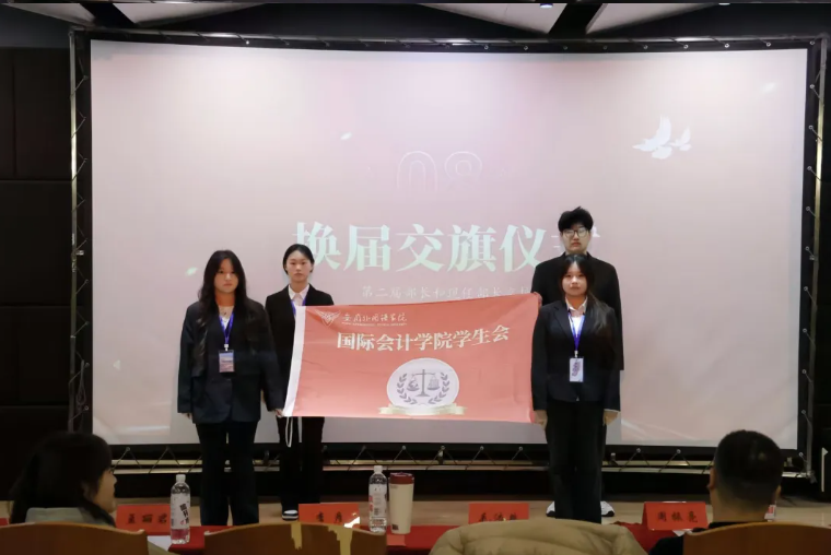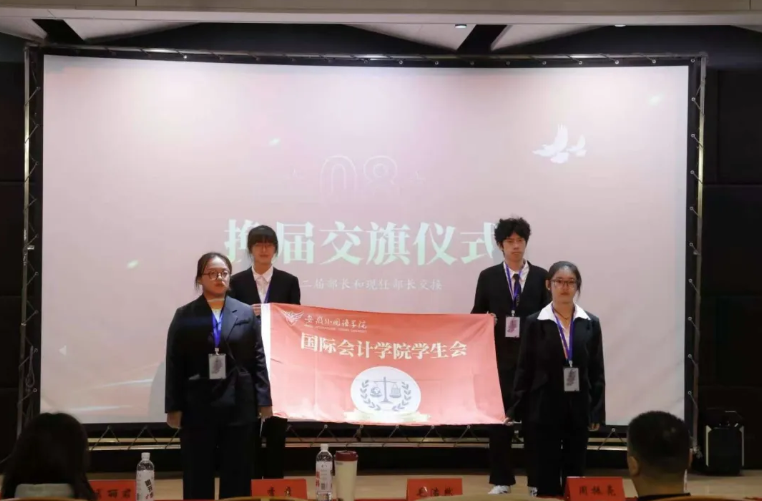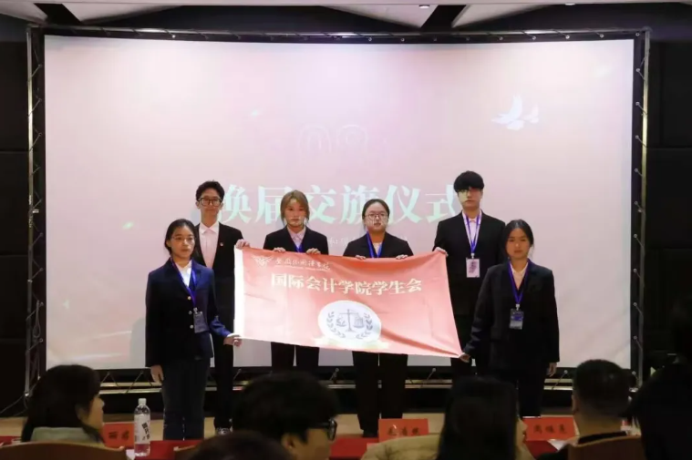 10月22日中午,我校国际会计学院学生会换届暨表彰大会在图书馆一楼放映厅顺利举行。国际会计学院书记毛浩然,学生会指导老师李彦,青协指导老师孟丽君,班联指导老师赵莉、周振亮及到场全体人员参会。会议由胡瑞妍、杨跃岭主持。