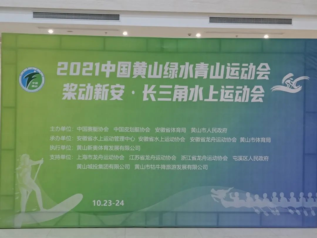 10月23日7:30,由中国赛艇协会、中国皮划艇协会、安徽省体育局、黄山市人名政府主办,安徽省水上运动管理中心、安徽省水上运动协会、安徽省龙舟运动协会、黄山市体育局承办的2021中国黄山绿水青山运动会暨桨动新安·长三角水上运动会在黄山市新安江滨湖旅游景区拉开了帷幕。在我校龙舟协会指导老师马瑞雪和教练王珊珊的带领下,安徽外国语学院龙舟协会代表队带着学校的期望向黄山出发。