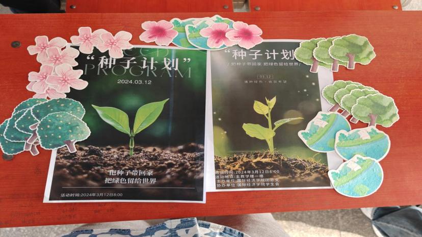 又是一年春光好,植树绿化正当时,为提高同学们的生态环保意识,在植树节来临之际,国际经济学院学生会于3月12日在主教一楼举办第一届“种子计划”植树节公益活动。