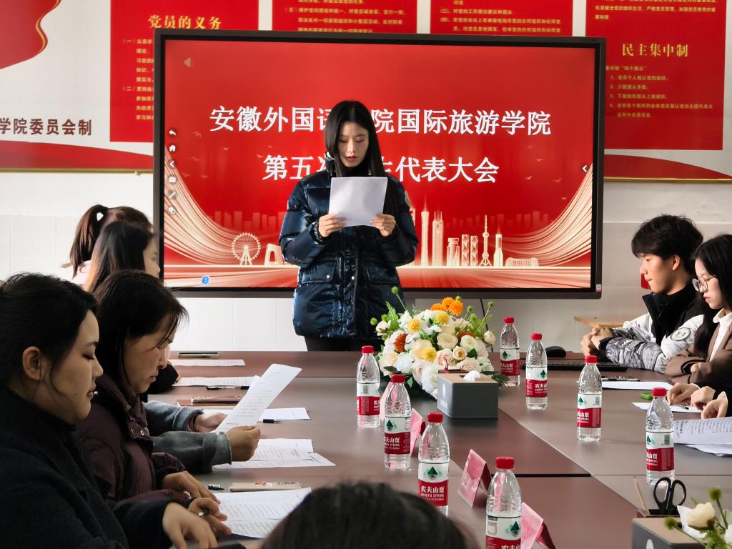 12月5日,国际旅游学院第五次学生代表大会于310党员活动室隆重举行。出席此次大会的嘉宾有国际旅游学院党总支书记、执行院长张华,党总支副书记满德慧,团总支书记陈佳妮,辅导员夏文清老师。学院11位学生代表参加了此次会议,共同回顾过去的学生工作成果,规划未来的发展方向。