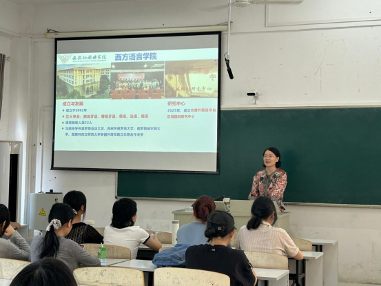 9月15日下午于西语楼301活动室,法语系系主任侯俊以清晰的脉络,为法语专业新生梳理了专业办学优势与人才培养路径,让同学们直观感受到法语在国际交流中的独特价值。活动期间,法语专业外籍教师也来到现场,用亲切的法语问候与同学们简单交流,分享了法语学习的趣味小技巧,让新生们近距离感受了地道的法语氛围。