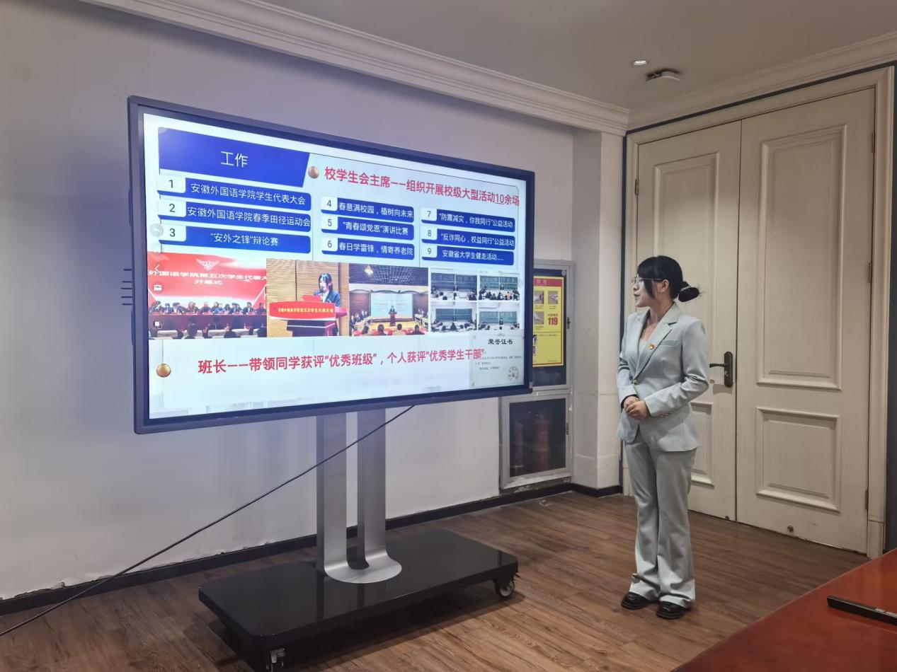 在风采展示环节,竞选人通过PPT汇报、成果陈列等多样化形式,从思想引领、学业精进、实践创新、社会服务等多维度全面呈现个人成长轨迹。