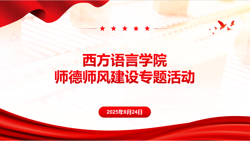 为深入贯彻《关于加强新时代高校教师队伍建设改革的指导意见》,强化我院师德师风建设,西方语言学院于9月24日组织全体教职工开展师德师风专题教育活动,通过“学准则、析案例、谈感悟”,深化师德建设,强化师德素养。