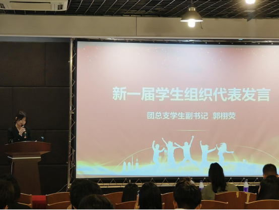 张叶琳宣读新一届学生组织干部拟任名单,宣布学生组织新力量正式就位。新一届学生组织代表、学院团总支学生副书记郭栩荧发言。她代表新一届成员向老师和上一届学生干部表达感谢,并从“筑牢组织根基、精准服务同学、彰显青年担当”三方面作出表态,承诺会以实际行动践行责任,不辜负大家的期待。