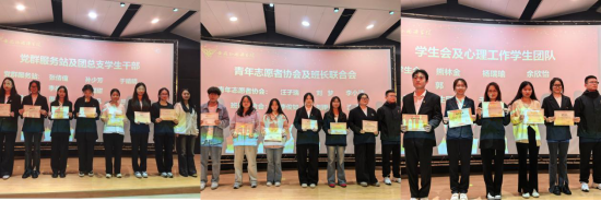 表彰环节中,曹婕、胡礼盼共同为上一届学生组织干部颁发证书,并表达感谢。这份荣誉不仅是对同学们过去一年辛勤付出的肯定,更彰显了他们在服务师生、助力学院发展中的突出贡献,现场掌声阵阵,充分体现了学生干部的使命感、价值感与荣誉感。