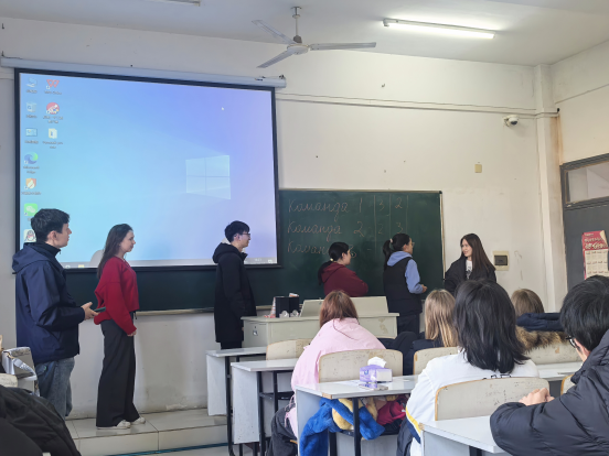 本次俄语角以“趣味游戏促交流”为核心,设置“你说我猜”和“传声筒”两大经典互动环节。“你说我猜”活动中,中俄学生随机组队,通过俄语描述、肢体动作配合猜测词汇,题目涵盖日常用品、文化符号等,既考验语言表达能力,又深化了彼此对两国文化的理解,现场欢声笑语不断,陌生感在互动中逐渐消融。“传声筒”活动将现场氛围推向高潮。同学们排成纵队传递俄语短语,发音偏差、记忆遗漏引发诸多趣味瞬间。外籍教师在旁实时指导,纠正发音误区、补充语法知识点,让大家在游戏中自然习得俄语知识。俄罗斯交换学生主动分享俄语表达技巧与民俗文化,俄语系学生介绍中国传统文化和风俗人情,语言交流与文化碰撞擦出精彩火花。活动在意犹未尽中结束,外籍教师肯定了同学们的表现,鼓励大家要学以致用,不断提升俄语综合能力。