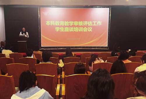 为迎接教育部本科教育教学审核评估,进一步提升学生代表的参与意识和沟通能力,2025年10月30日中午,学生处在图书馆一楼放映厅召开了本科教育教学审核评估工作学生座谈培训会议。学生座谈组成员,学生座谈会学生代表参会。会议由学生处处长徐桂香主持。