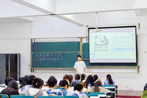 为切实提升2025 级新生防范电信网络诈骗的意识与能力,守护学子财产安全,9 月 24 日晚,信息与数学学院于四教 105 教室开展新生防诈骗科普活动。活动由我院反诈宣传员主讲,2025 级全体新生参加,现场学习氛围浓厚。