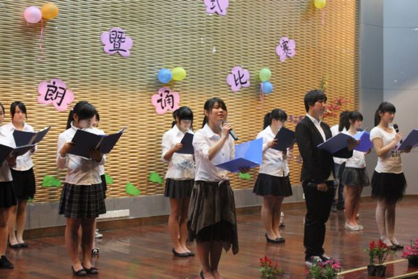 随后本届校园文化艺术节的第一个活动诗歌朗诵比赛正式开始,此次比赛以“迎“十八大”,构建和谐校园;庆校庆,展示学子风采”为主题,推陈出新,内容多样而又不失严肃。比赛在温婉平缓的格调中开始,以热烈激昂的言辞迈入高潮,最后又在优美平缓中走向尾声,整个流程疏密相间,刚柔相济,选手的朗诵与主持人的旁白紧密结合,使师生在波澜起伏的声音盛宴里,感受到我们党的伟大和光辉、感受到了校园的美丽和生活的美好,展示了安外学子的风采。