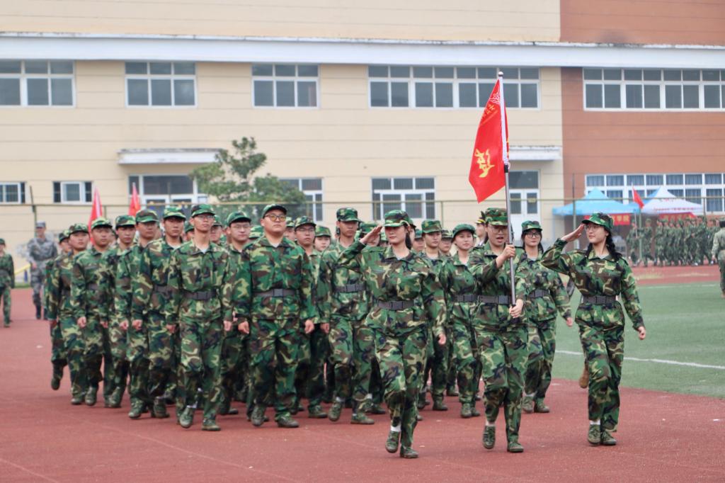 分列式方队的新生们身着迷彩服,迎着激昂的音乐,以高昂的士气、严整的军容、挺拔的军姿、嘹亮的口号、整齐的步伐依次走过主席台,接受检阅。他们英姿飒爽,尽显青春风采。