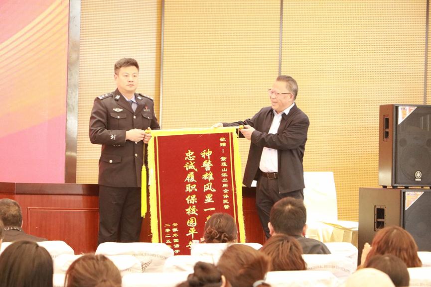 会议现场,刘银国代表学校向紫蓬山派出所赠送锦旗,张青云在讲话中表示,公安机关将始终与学校紧密协作,持续打击涉校违法犯罪行为,全力守护校园安全。随后,校领导与院、部、处、室代表签订《2025年度安全工作责任书》《消防工作责任书》《意识形态工作责任书》,进一步明确责任主体,细化考核指标,确保安全工作落到实处。