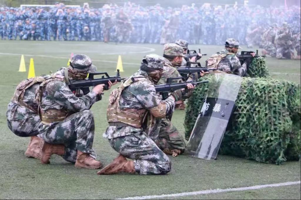 历经锤炼的新生们以昂扬的斗志和整齐的步伐,依次进行队列展示、警棍术、刺杀操、擒敌拳、破风大刀等多项军事技能表演,教官团队也带来了精彩的战术表演。