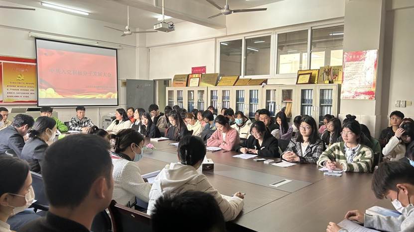 会议第一项,21名发展对象依次向大会汇报思想和生活表现,并提出入党申请。每位发展对象都向党组织汇报自身对党的认识、入党动机、个人经历以及在校表现,他们入党动机端正,通过一年的学习和锻炼,每位发展对象都有很大的进步和提升。汇报完毕,入党培养人发言介绍每位发展对象在考察期的表现,并对其是否入党表明意见。