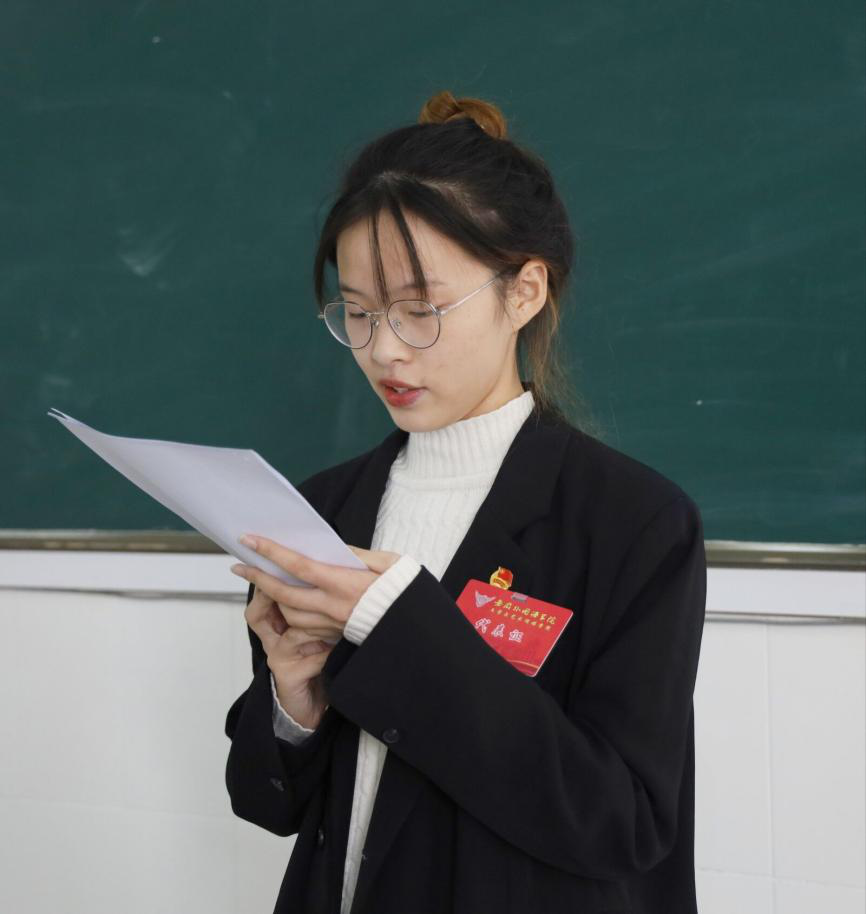 随后,卜美倩老师请在座各位代表审议并表决通过了《安徽外国语学院学生会章程》,然后宣读了校学代会代表选举办法,学院学生主席团、学生委员会选举办法,并组织学生代表们举手表决,表决多数通过。之后进行无记名投票选举学院学生会主席团成员、学生委员会委员、学院推荐参加校学代会代表,工作人员收取选票并进行统票。经过漫长的等待后,由卜美倩老师宣读各项投票结果产生的正式名单。